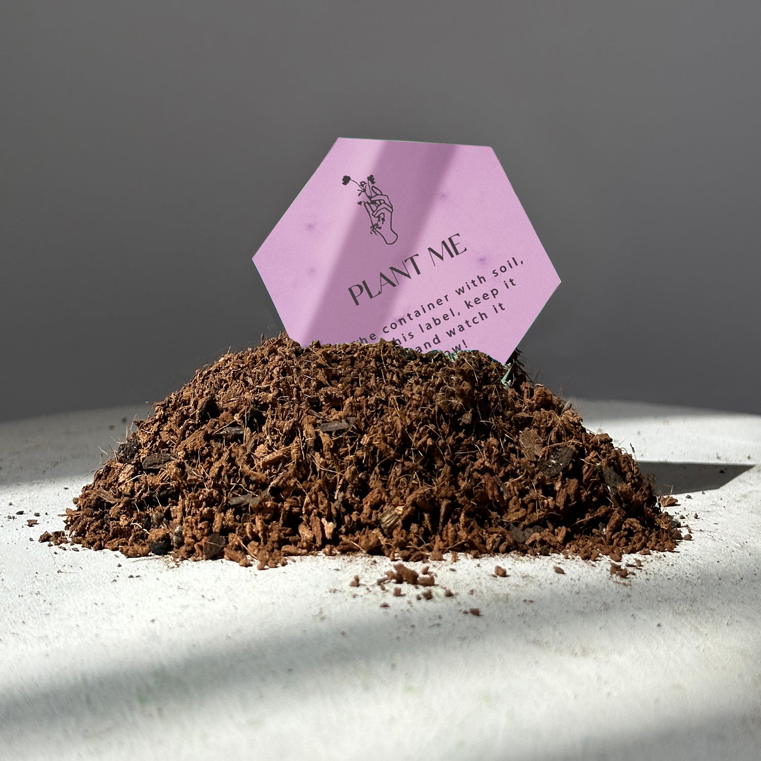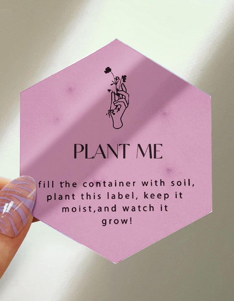 The label of the candle comes embedded with Mimosa Pudica seeds, allowing you to plant the label in the candle's vessel and grow your own beautiful plant. This not only adds to the sustainability of the product, but also symbolizes the growth and manifestation of your desires.