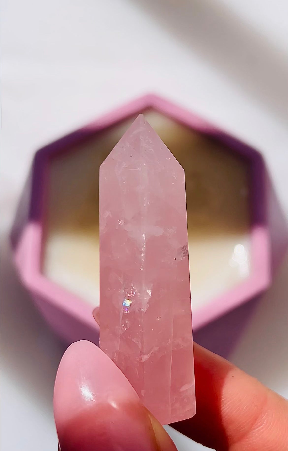 Our candles are crafted with premium soy wax and scented with a sensual blend of pink florals, amber, musk, it emanates a warm and inviting aroma that will fill your space with love and positivity. Hidden inside each candle is a beautiful rose quartz crystal, known for its ability to attract love, promote healing and harmony, and foster emotional balance.