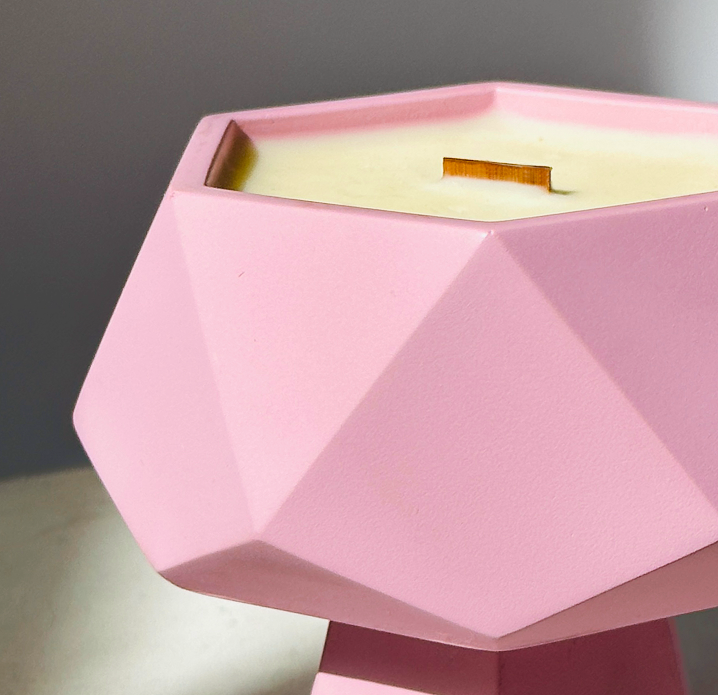 Hand-poured wooden wick candle, made with 100% American farmed soy wax, and luxurious fragrance oil blend.