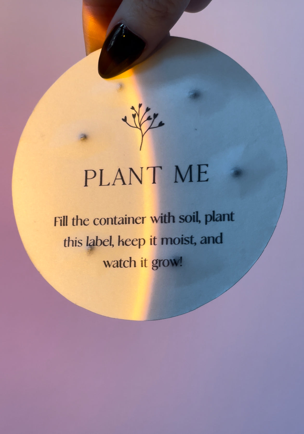 Our labels embedded with Mimosa Pudica’s seeds. Famously known as the Sensitive Plant, the Mimosa pudica has long been an object of wonder and curiosity because its leaves are highly responsive to touch, folding inwards when triggered. When the candle burns out, fill the empty container with soil. Place the seed label and lightly cover with 1/2 inch of soil. Keep it moist until germination. This plant likes bright light and high humidity. Keeping it moist but not soggy is key. Also, ensure that it is planted in well-draining, loamy soil. The Sensitive Plant is completely non-toxic. This means that you can safely keep it around pets and babies.
