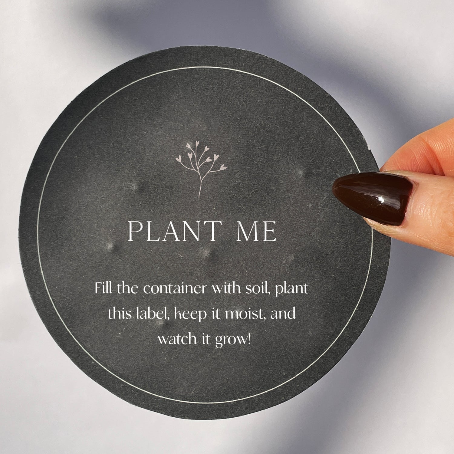 Our labels embedded with Mimosa Pudica’s seeds. Famously known as the Sensitive Plant, the Mimosa pudica has long been an object of wonder and curiosity because its leaves are highly responsive to touch, folding inwards when triggered. When the candle burns out, fill the empty container with soil. Place the seed label and lightly cover with 1/2 inch of soil. Keep it moist until germination. This plant likes bright light and high humidity. Keeping it moist but not soggy is key. Also, ensure that it is planted in well-draining, loamy soil. The Sensitive Plant is completely non-toxic. This means that you can safely keep it around pets and babies.